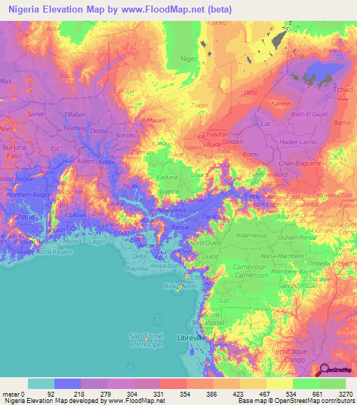 Nigeria Elevation And Elevation Maps Of Cities, Topographic Map Contour